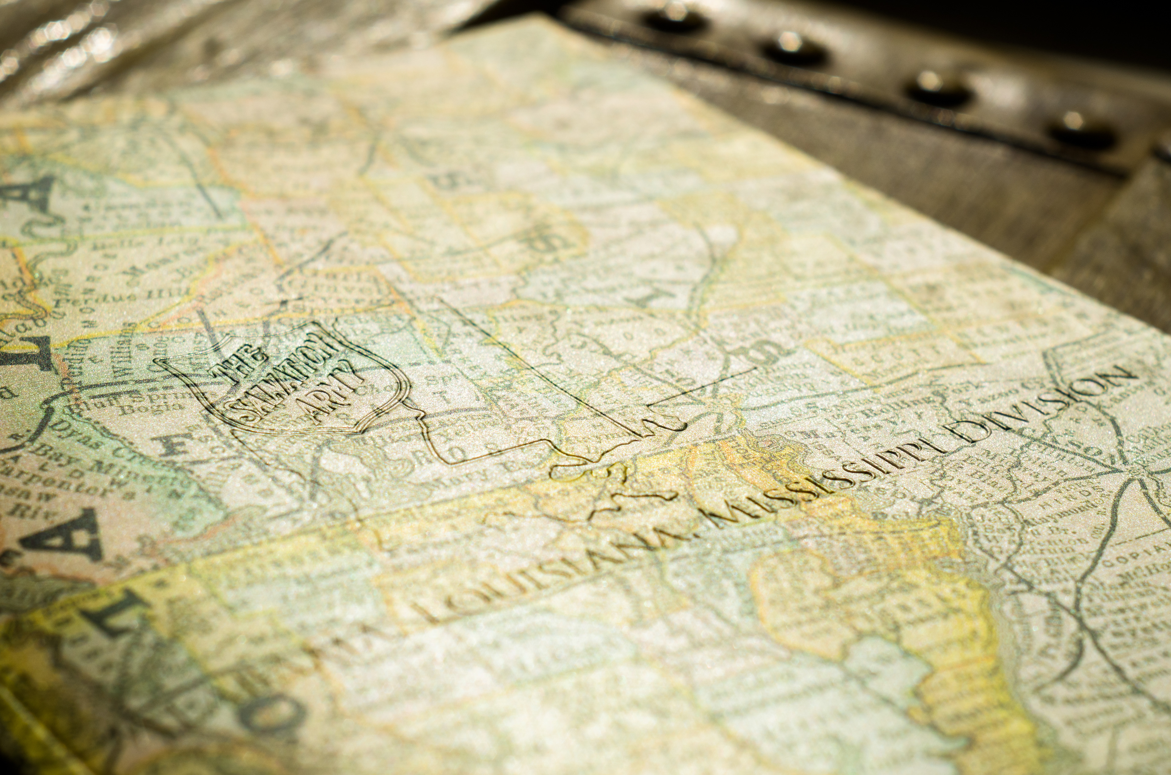 The Salvation Army’s 2015 National Advisory Board Meeting was held in Jackson, MS, and I was given the opportunity to design a booklet highlighting the work of the Alabama, Louisiana, Mississippi Division for the event. I created a collage from antique maps of the three states for the cover, with areas from each state flowing seamlessly together, making it impossible to distinguish state borders—emphasizing one unified division. The booklet includes divisional service statistics, sections for each state with highlighted program pages, and a disaster relief timeline infographic.